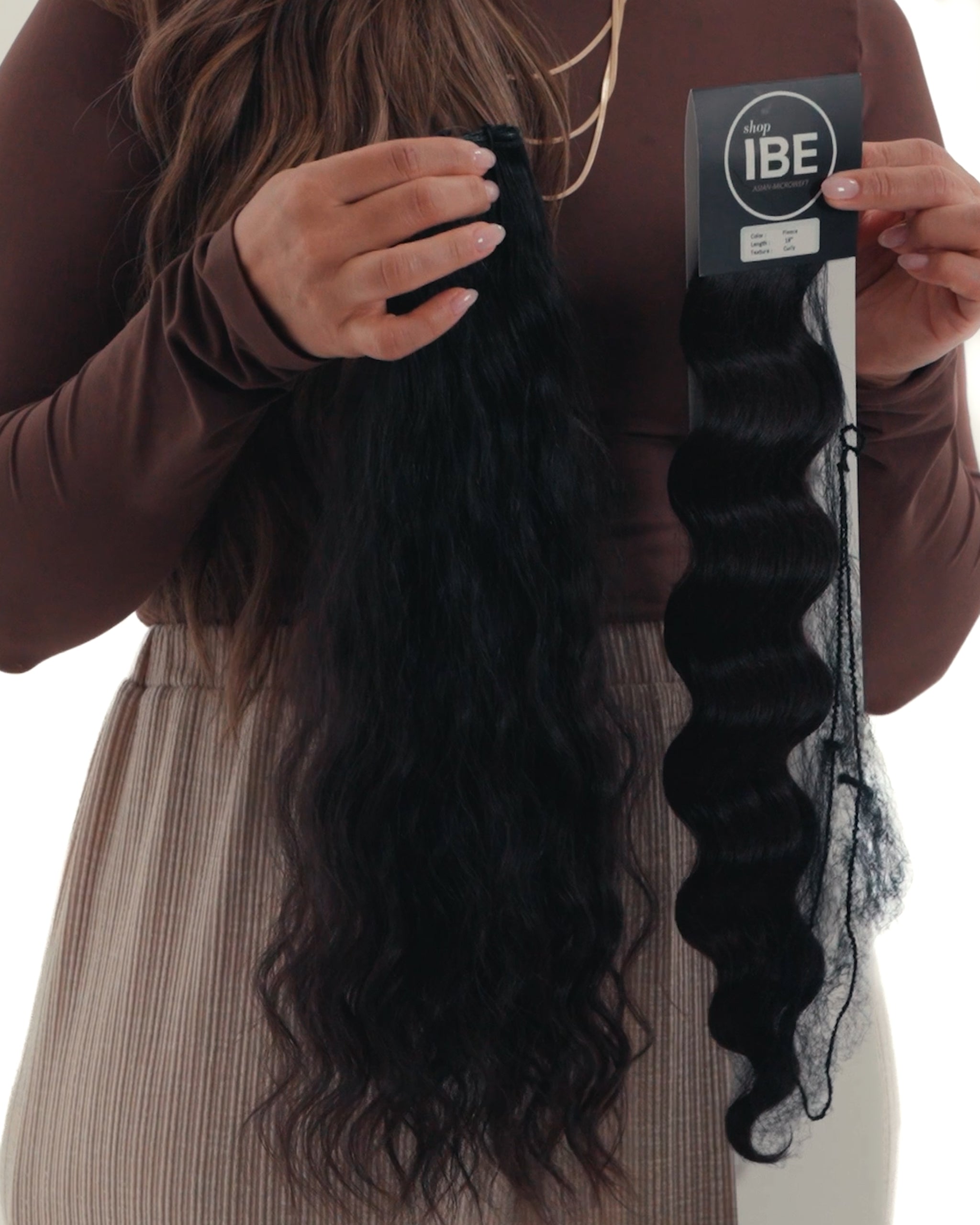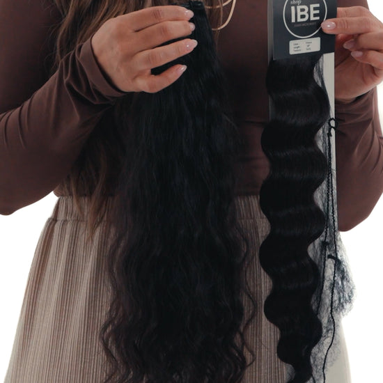 The Curly texture is crafted by hand, using a proprietary waving process. It is a permanent wave that lasts the life of the extensions. This wave performs best when scrunched and/or diffused. For a looser wave option, view the Natural Wave Collection.